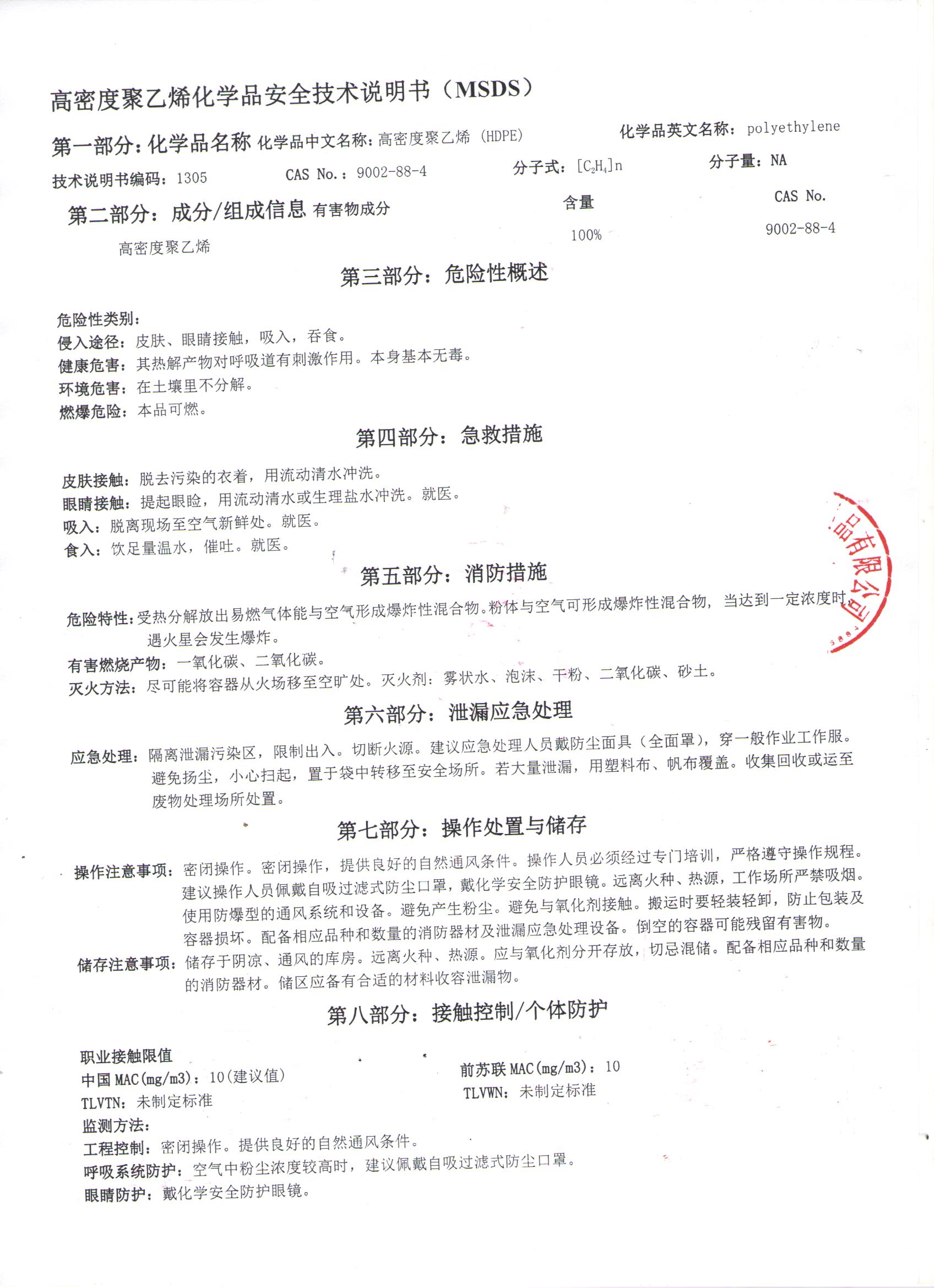 塑料卡板MSDS化學(xué)品安全技術(shù)說明報告